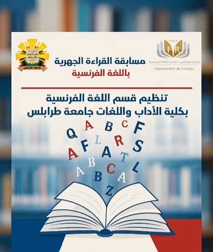 يدعو قسم اللغة الفرنسية بجامعة ليبيا المفتوحة، طلابه الراغبين بالمشاركة، ” بمسابقة القراءة الجهرية باللغة الفرنسية لطلاب الليسانس والدراسات العليا