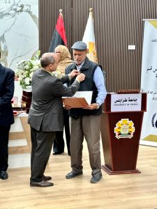 كما تم أيضاً تكريم الدكتور محمد صالح القلاي عضو هيئة التدريس المتقاعد، والمتعاون بقسم اللغة الفرنسية بجامعة ليبيا المفتوحة، على جهوده في إنجاح فاعلية مسابقة ” القراءة الجهرية ” باللغة الفرنسية.